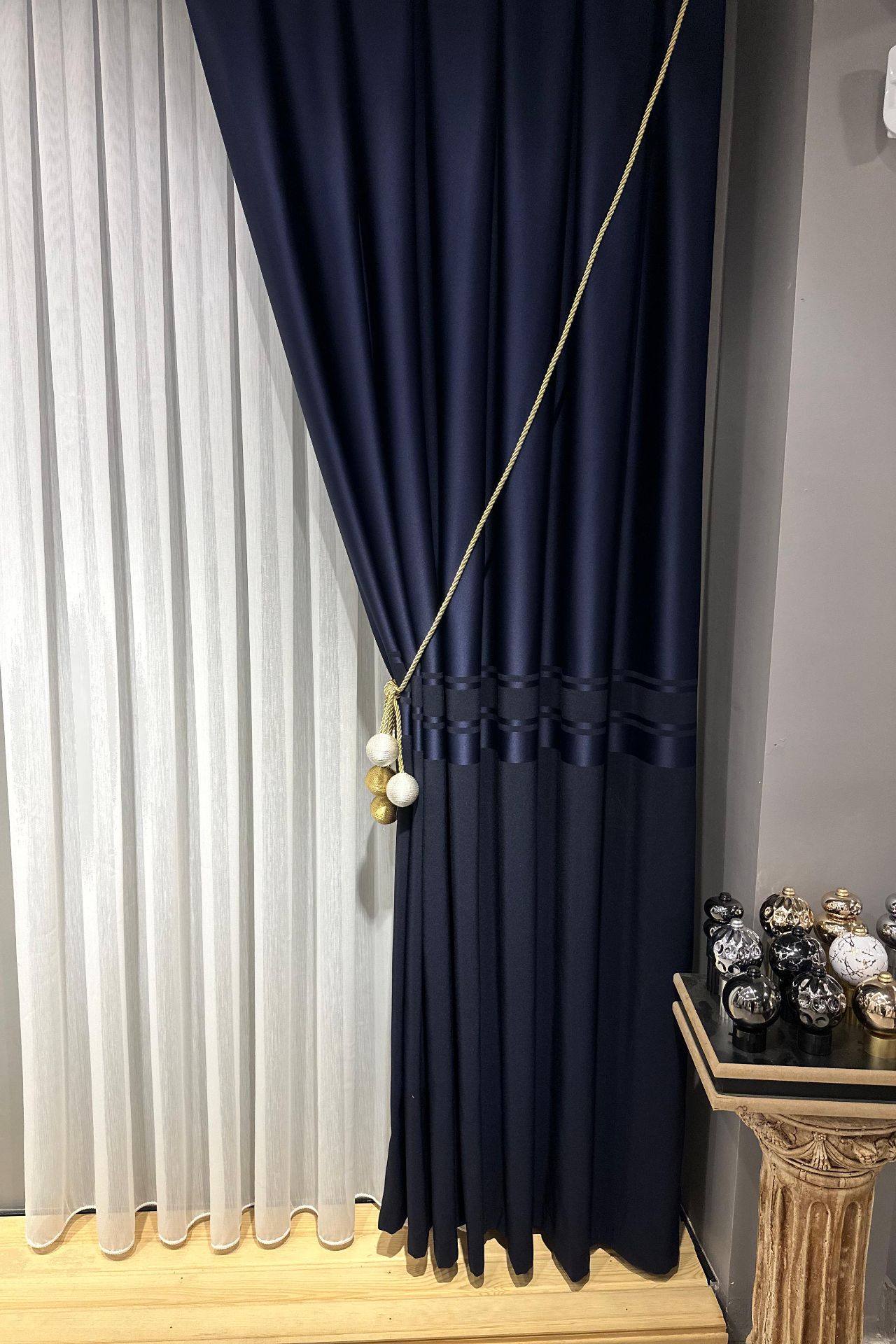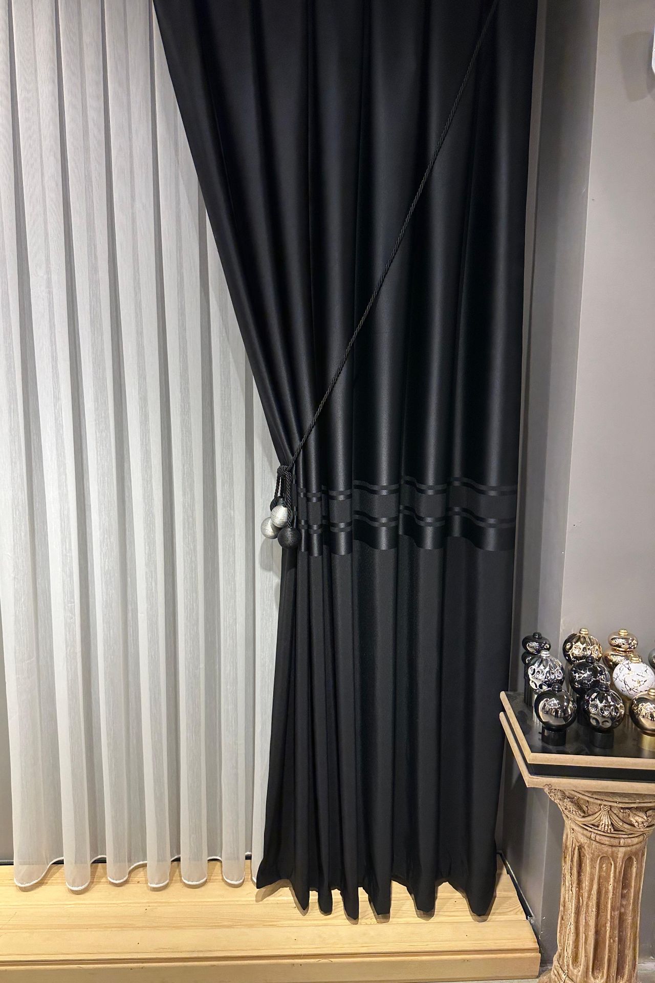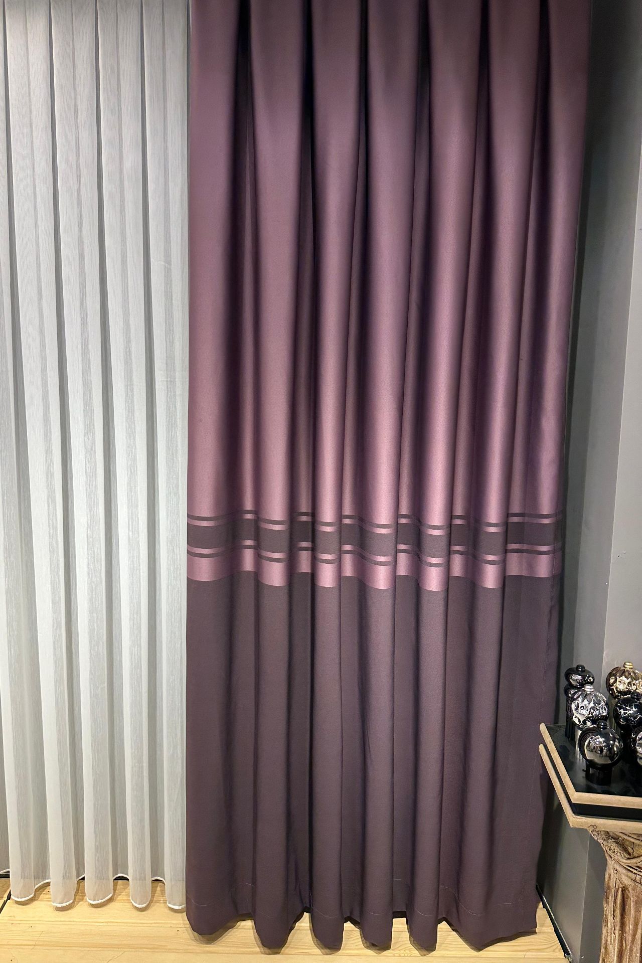 Salon dekorasyonunun tamamlayıcısı kadife ve keten fon perdeler...