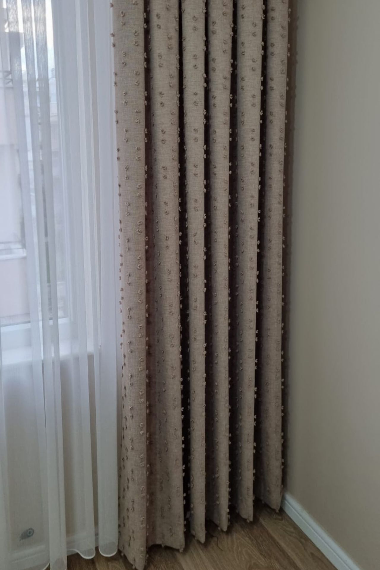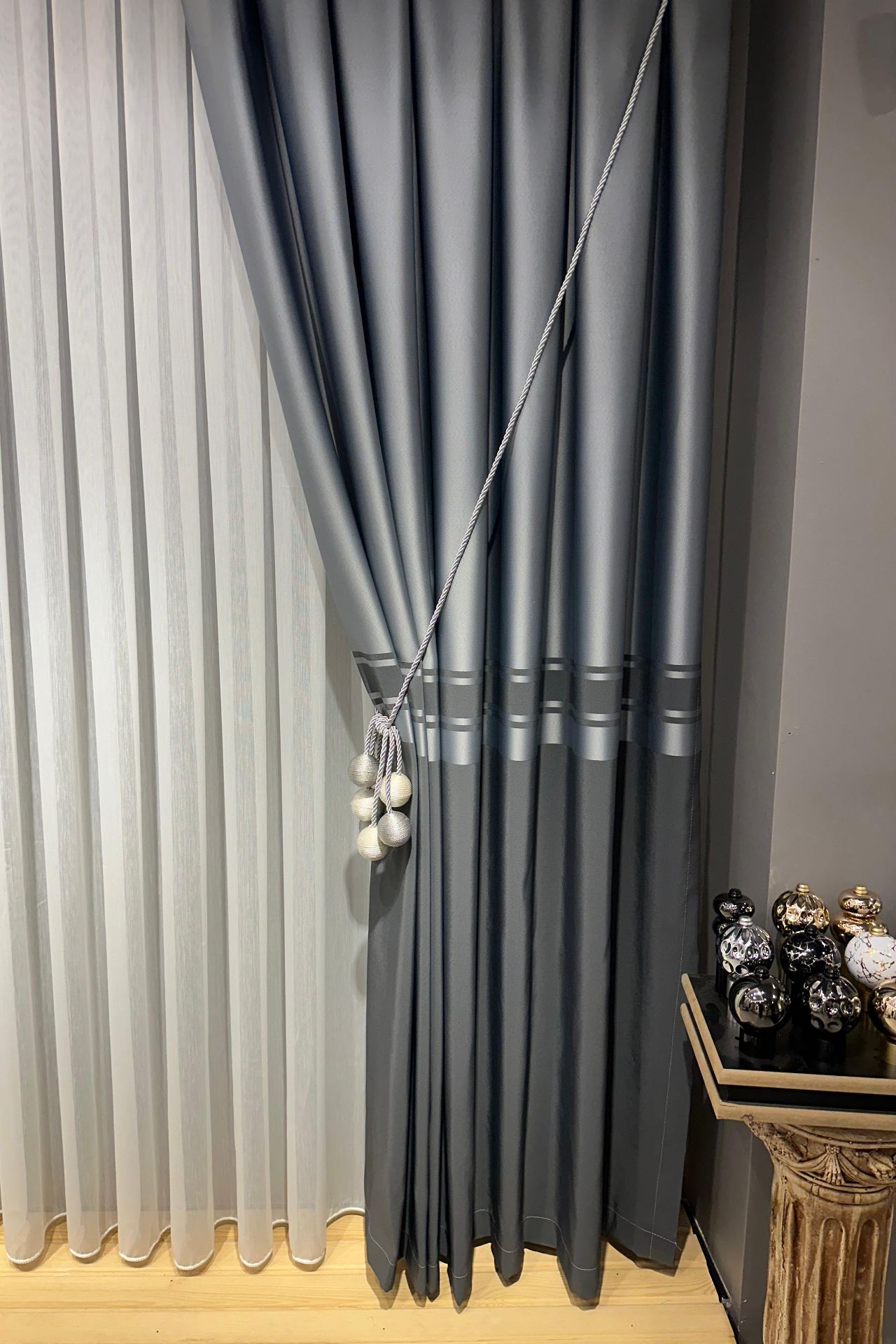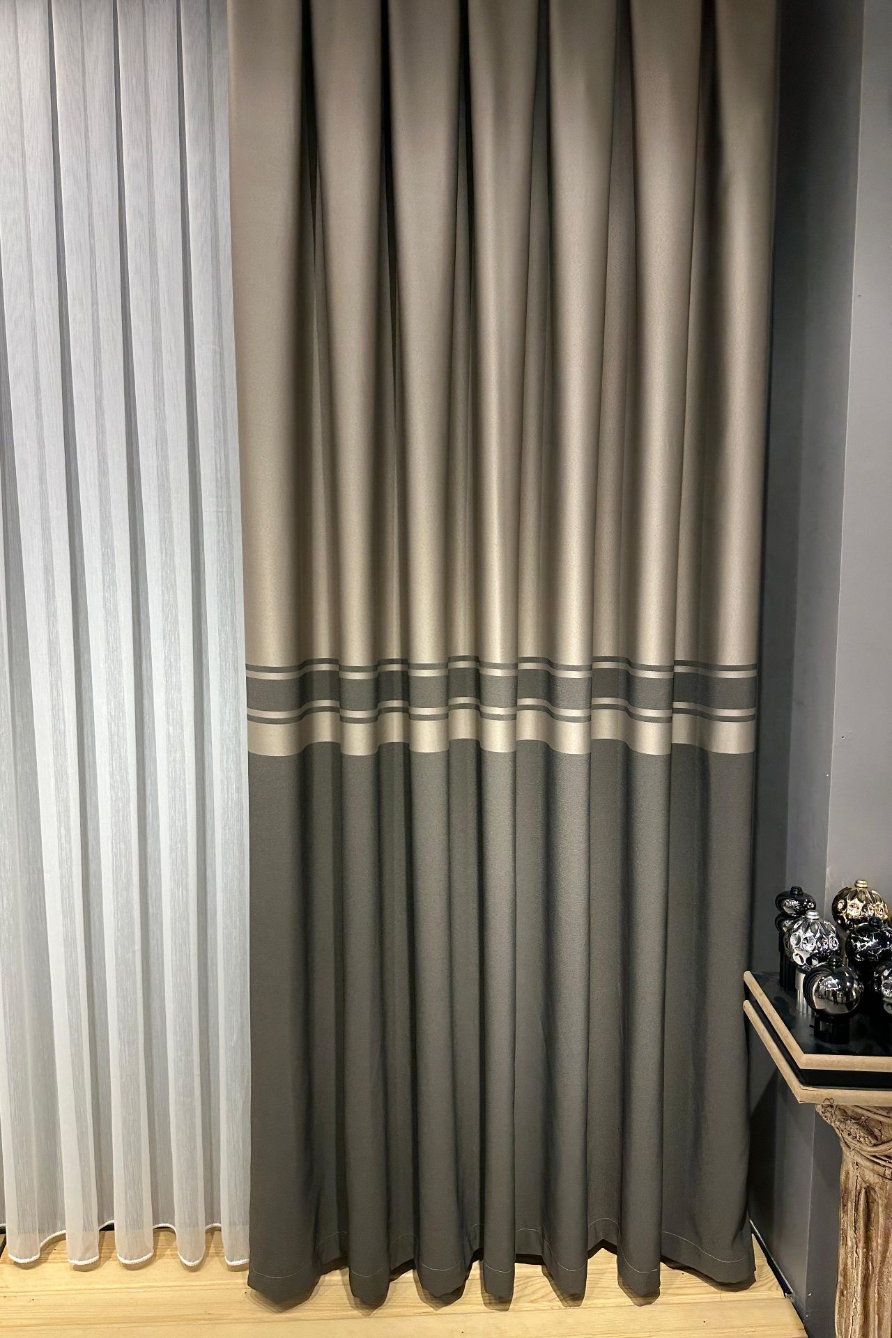 Salon dekorasyonunun tamamlayıcısı kadife ve keten fon perdeler...